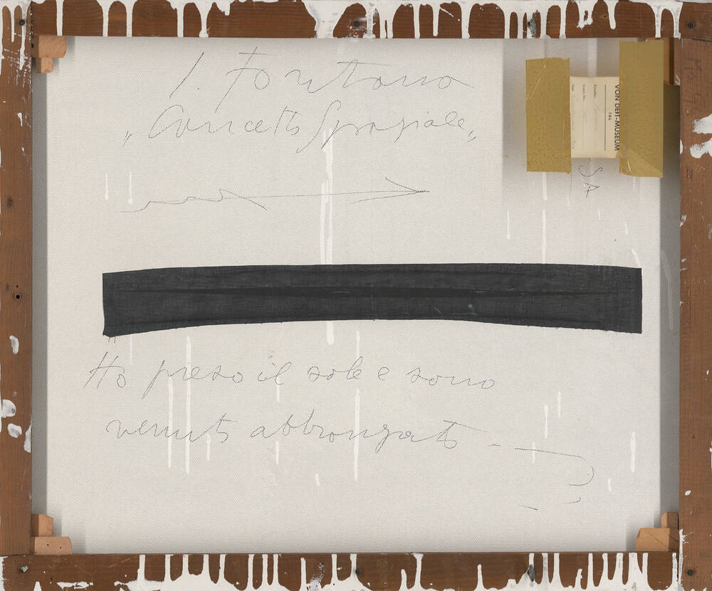 Seit 1947 verwendete Fontana den Begriff „Concetto spaziale“ (Raumkonzept) als Obertitel für alle Werkreihen. 1958 beginnt die Serie der Schnittbilder, die er mit dem Zusatz „Attesa“ (Erwartung) oder „Attese“ versah.