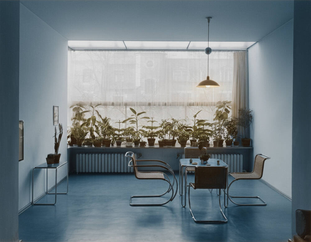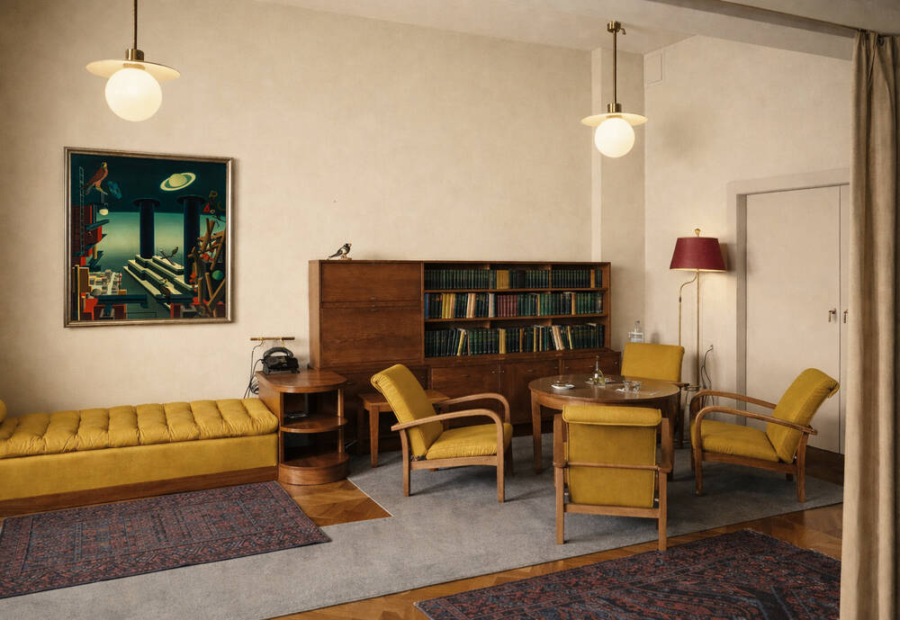Ein Teil von Carl Grossbergs Wohnprojekten ist in Schwarz-Weiß-Fotografien überliefert, die durch schriftliche Hinweise zu Farben und Materialien ergänzt werden. Auf dieser Grundlage wurden die Aufnahmen mithilfe künstlicher Intelligenz koloriert, um die ursprüngliche Farbwirkung sichtbar zu machen. Die hier gezeigten Bilder stellen einen Versuch zur Annäherung an die von Grossberg beabsichtigte, fein abgestimmte Wirkung von unter anderem Tapeten, Bodenbelägen, Möbeln, Teppichen und Polstern dar.